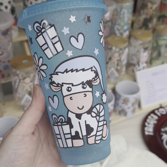 Blue Christmas cow cold cup